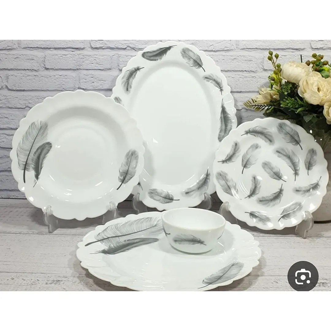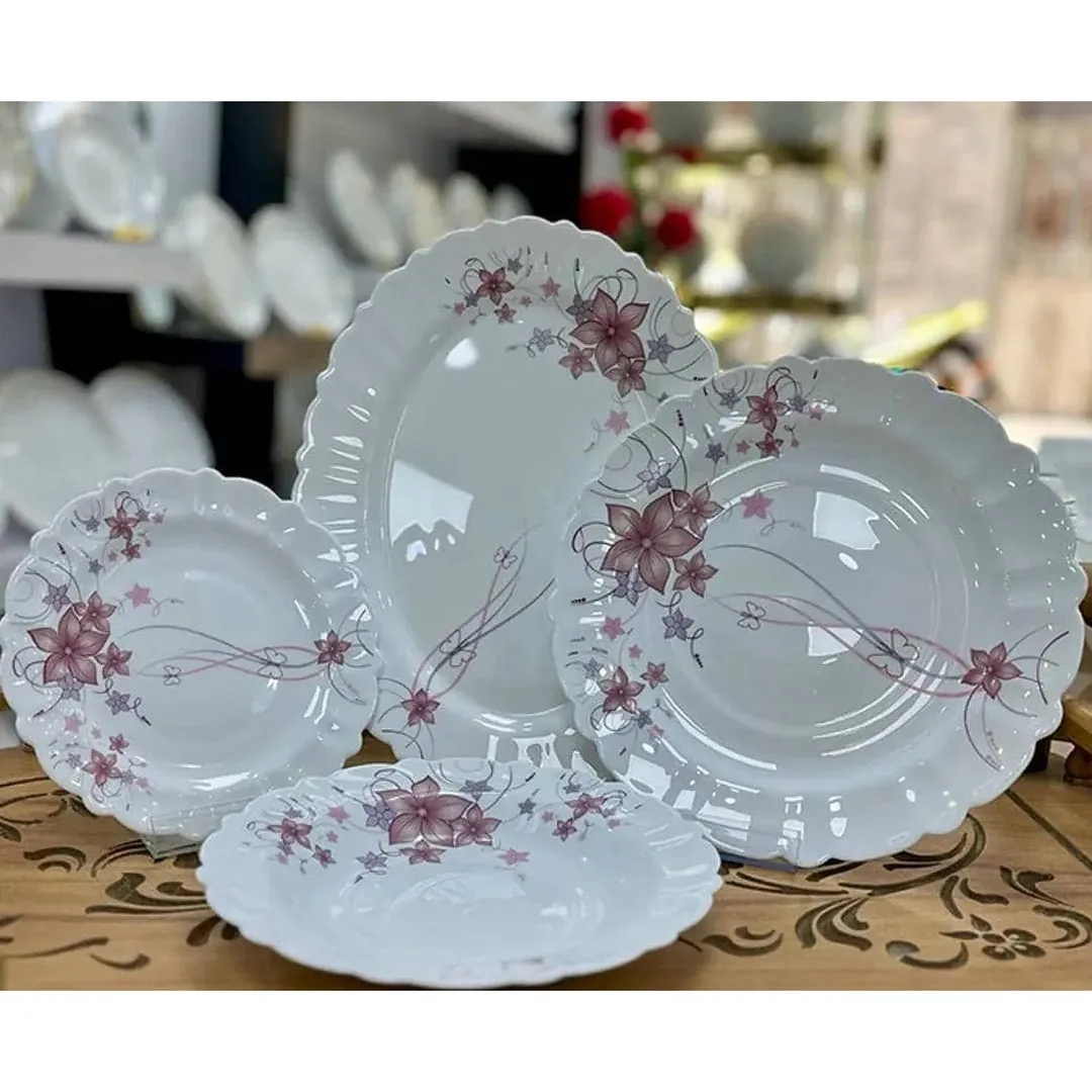 یک سرویس شامل: 6 عدد پلوخوری، 6 عدد خورشت خوری، 6 عدد پیاله، 6 عدد پیشدستی، 1 عدد دیس